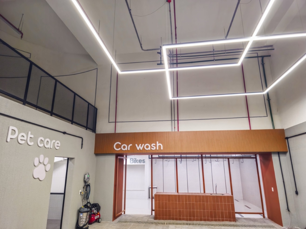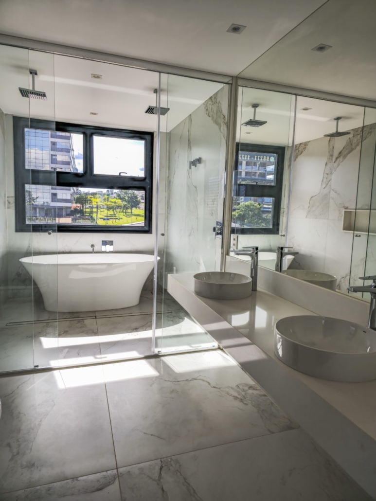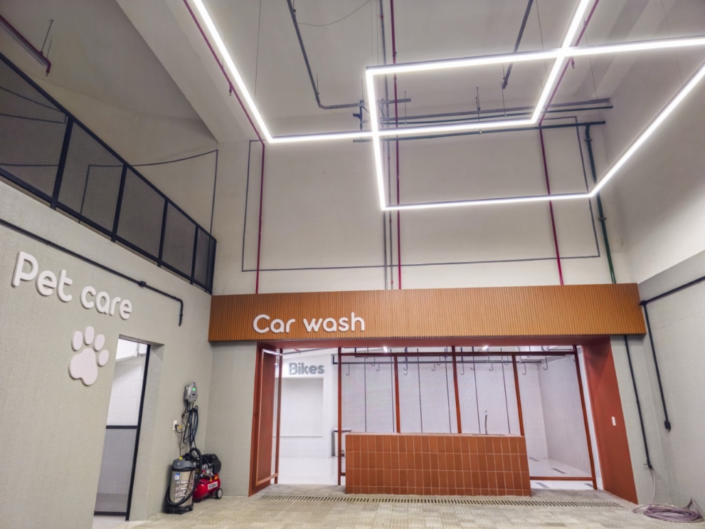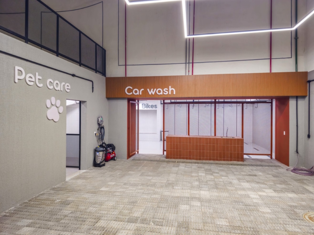 O conforto interno foi planejado para oferecer máxima funcionalidade e tecnologia. As paredes internas em drywall com lã de PET permitem flexibilidade e isolamento, e todos os apartamentos possuem laje técnica para instalação de ar-condicionado. A cozinha é entregue com triturador de resíduos orgânicos e pontos para lava-louças e geladeira. Cada unidade possui 4 vagas de garagem soltas. O residencial ainda disponibiliza serviços diferenciados no subsolo, como Car Wash e Pet Care.