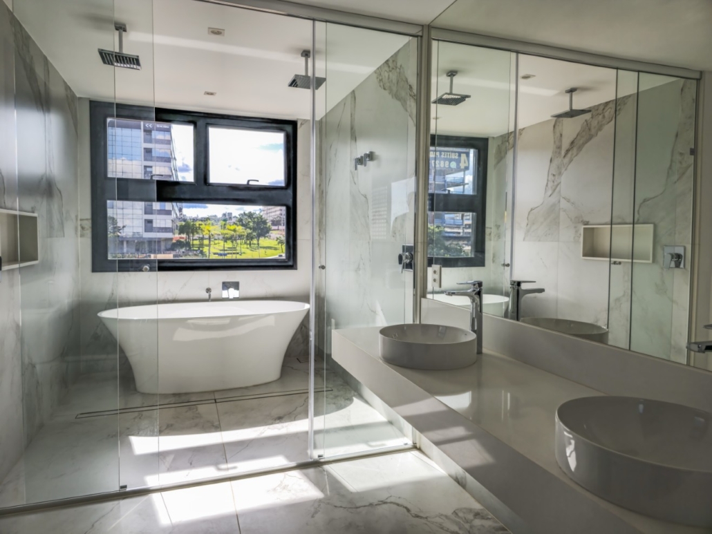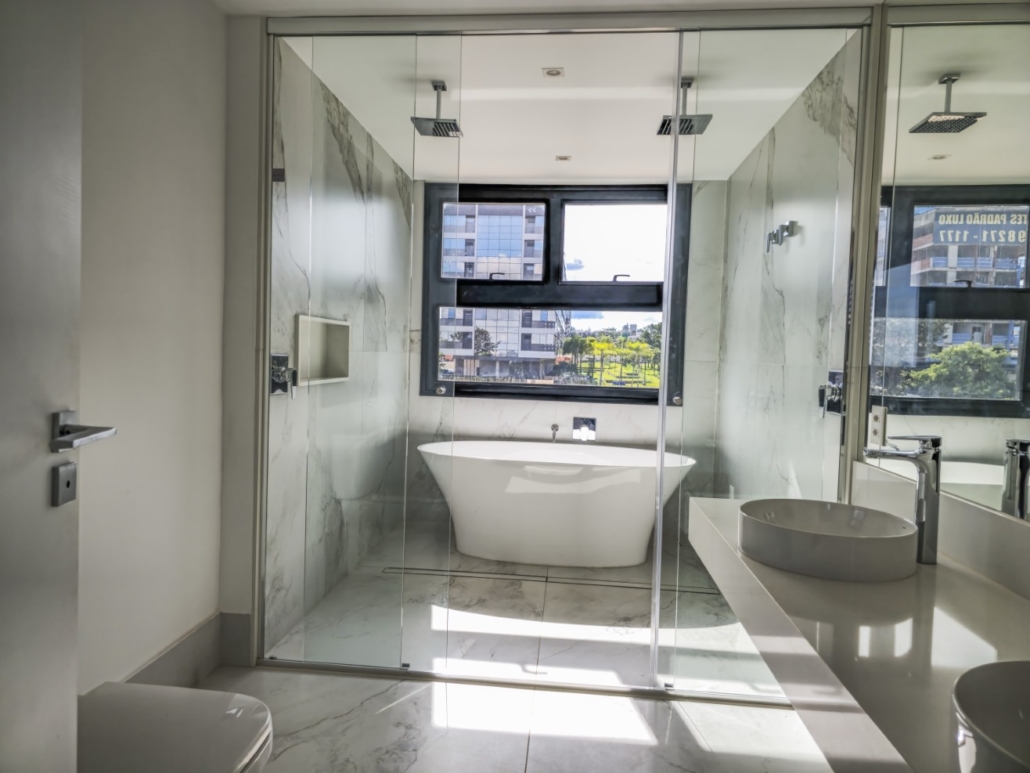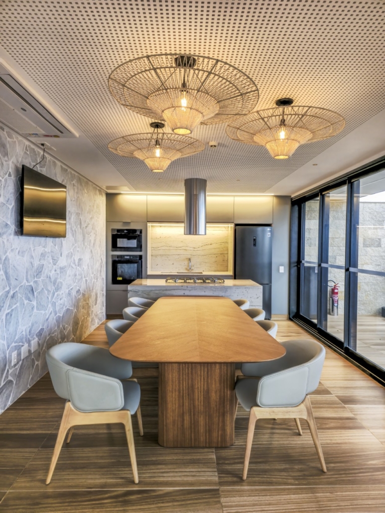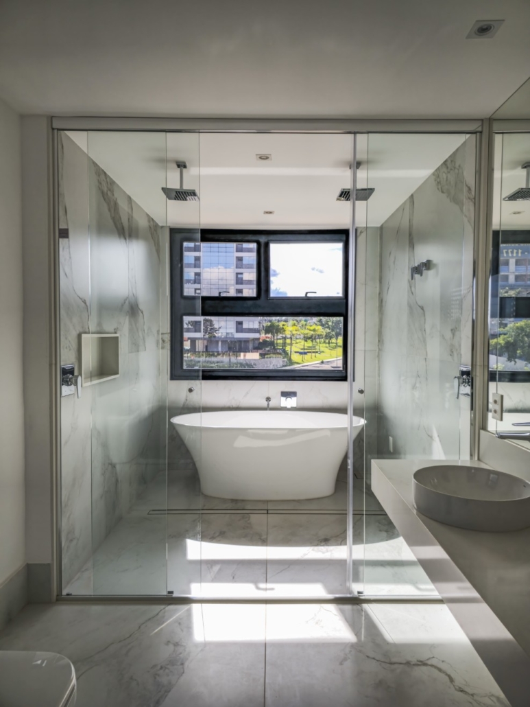 O conforto interno foi planejado para oferecer máxima funcionalidade e tecnologia. As paredes internas em drywall com lã de PET permitem flexibilidade e isolamento, e todos os apartamentos possuem laje técnica para instalação de ar-condicionado. A cozinha é entregue com triturador de resíduos orgânicos e pontos para lava-louças e geladeira. Cada unidade possui 4 vagas de garagem soltas. O residencial ainda disponibiliza serviços diferenciados no subsolo, como Car Wash e Pet Care.