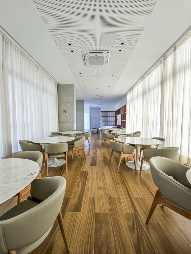Além disso, o empreendimento prioriza a segurança e a tecnologia, com recursos como sistema de alarme antipânico, controle de acesso por reconhecimento facial e isolamento acústico dos pisos com Manta Aubicon, proporcionando tranquilidade e sofisticação.
