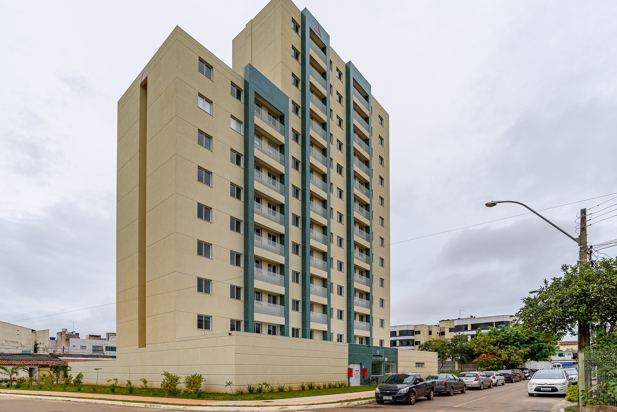 O empreendimento oferece apartamentos compactos de 2 quartos, com áreas que variam entre 51,40 a 53,48 m2 e dispõe de 1 vaga de garagem por unidade. Sua localização é estratégica, próxima a três saídas importantes com acesso ao Plano Piloto.